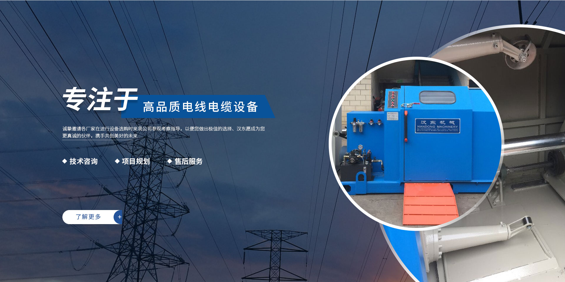 常州漢東機(jī)械始創(chuàng)于2006年,是集電線電纜機(jī)械設(shè)計(jì)、開發(fā)、制造、安裝、調(diào)試為一體化的高科技企業(yè)。本公司自開業(yè)以來,積極引進(jìn)日本,歐美等國(guó)外電線電纜設(shè)備之先進(jìn)技術(shù),先后成功推出了達(dá)到行業(yè)先進(jìn)水平的電線電纜設(shè)備,主要產(chǎn)品有擠出、繞包、束線、成纜等電線電纜固定設(shè)備。在提供系統(tǒng)設(shè)備的同時(shí),還向客戶提供售前技術(shù)咨詢、項(xiàng)目規(guī)劃、以及售后服務(wù)。我公司本著“以人為本、科技先導(dǎo)、用戶為上”的宗旨,為客戶提供牢靠的產(chǎn)品與省心的服務(wù)。漢東愿成為您更真誠(chéng)的伙伴,攜手共創(chuàng)美好的未來! 了解更多+大核心優(yōu)勢(shì)